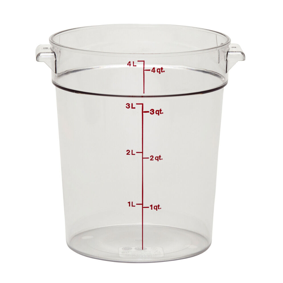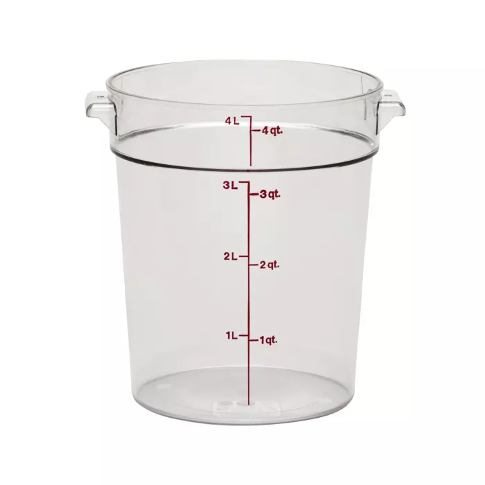 Revolutionize your kitchen with durable Cambro RFSCW4135, 4 Qt Round Food Storage Clear Container, ensuring extra freshness and savings for your ingredients! This crystal-clear design is virtually unbreakable, outstanding for fast paced kitchens.