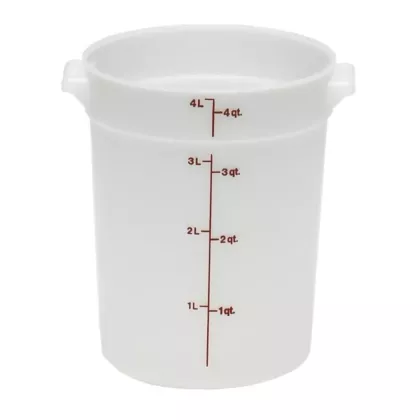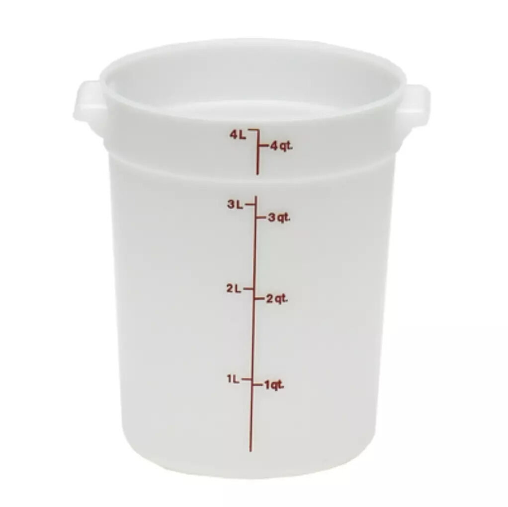 Better utilize your storage space with the Cambro RFS4-148, 4 Qt Round Food Storage White Container, a budget friendly storage solution!