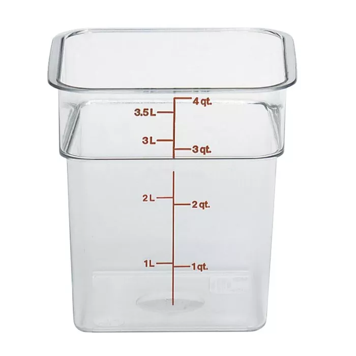 Revolutionize your kitchen with durable Cambro 4SFSCW135, 4 Qt Square Food Storage Clear Container ensuring extra freshness and savings from your ingredients! This crystal-clear design is virtually unbreakable, outstanding for fast paced kitchens.