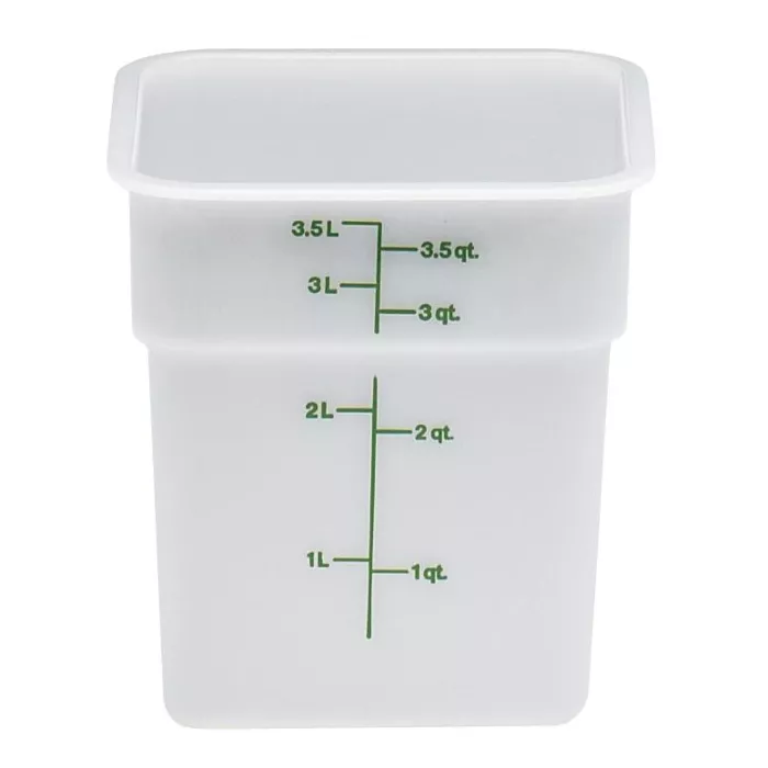 Better utilize your storage space with the Cambro 4SFSP148, 4 Qt Square Food Storage White Container, a budget friendly storage solution!