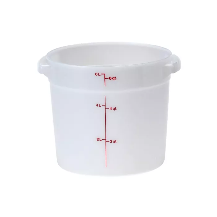 Better utilize your storage space with the Cambro RFS6-148, 6 Qt Round Food Storage White Container, a budget friendly storage solution!