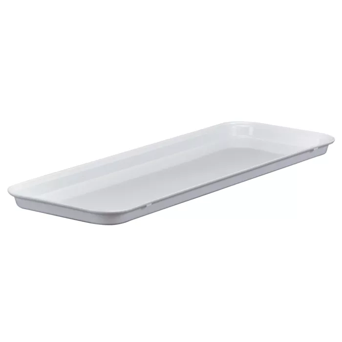 Use to merchandise salads, desserts, hors d’oeuvres, pastries or other foods. Trays feature a low profile narrow rim and Pans have a deep 2" rim. Made of high-impact resistant fiberglass with reinforced edges. Dri-Stak separators allow air circulation around trays and pans for quick drying. NSF listed (Yellow is NSF listed for non-direct food contact only).