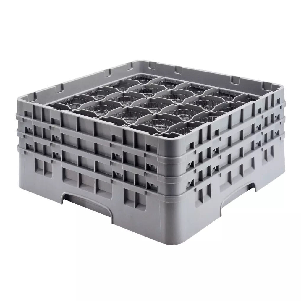 Wash, store and safely transport stemware and tumblers. Open inside compartments ensure thorough cleaning. Closed external walls keep fingers and contaminants out. Smooth sides and rounded corners reduce risk of injury. Easy-to-grip, rounded handles on all four sides provide comfortable handling. Smooth top rim ensures quick, stable stacking. Durable, long-lasting polypropylene will withstand chemicals and high temperatures up to 200°F (93,3°C). Full size racks are standard size 19 3/4" x 19 3/4" (50 x 50 cm). Inter-stacks with all other competitive racks. Fits through any commercial dishwasher.