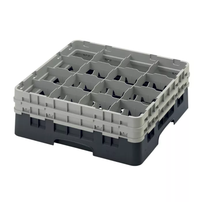 Wash, store and safely transport stemware and tumblers. Open inside compartments ensure thorough cleaning. Closed external walls keep fingers and contaminants out. Smooth sides and rounded corners reduce risk of injury. Easy-to-grip, rounded handles on all four sides provide comfortable handling. Smooth top rim ensures quick, stable stacking. Durable, long-lasting polypropylene will withstand chemicals and high temperatures up to 200°F (93,3°C). Full size racks are standard size 19 3/4" x 19 3/4" (50 x 50 cm). Inter-stacks with all other competitive racks. Fits through any commercial dishwasher.