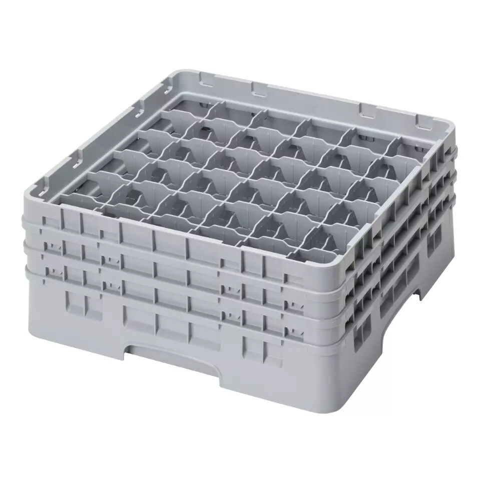 Cambro 36S638151 Camrack Glass Rack with 36 Compartments & 3 Extenders - Grey