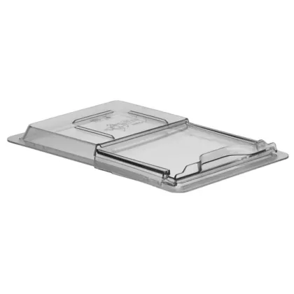 Level up your cross-contamination prevention with the easy-to-use Cambro 1218SCCW135 Sliding Storage Container Cover, Clear for Camwear Food Boxes. Reduce unnecessary handling with durable covers that slide open for easy access to contents, while providing snap tight protection. Top molded-in rails provide safer, more secure stacking during use in coolers and freezers. Designed from virtually unbreakable Camwear, the SlidingLid is an enhanced storage solution.