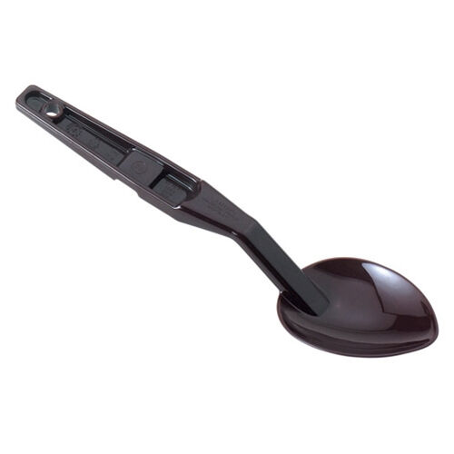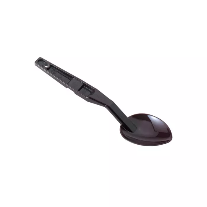 Use to stir, mix or serve cold or warm food. Made of virtually unbreakable Camwear® polycarbonate. Compared to metal, these spoons will never tarnish, bend or dent. A wide handle and molded in thumb rest ensures a solid, ergonomic grip. Handle includes a hole for hanging when not in use.