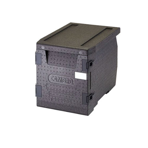 Heavy-duty with comfortable handles allow easy and safe lifting on the GoBox.  Unique design allows inter-stacking, saving 30% storage space and has ergonomic handles.  Cam GoBox top-loading carriers are designed with enough room to hold GN 1/1 pans along with Camwarmers and Camchillers, if desired.  A built-in label area keeps plastic menu tags in place for easy content identification or routing.