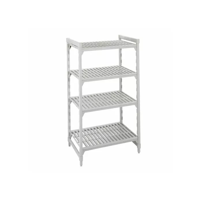 Includes: (4) vented polypropylene shelf plates with Camguard™ antimicrobial protection, (2) pre-Assembled post kits (Posts constructed of steel with polypropylene exterior), (8) traverses & molded-In dovetails