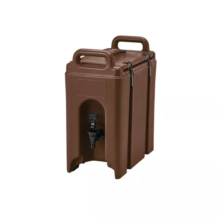The standard for many caterers these self-serve containers are drip-proof, rust-proof, and have secure latches for their lids. One piece, seamless double-wall polyethylene with thick foam insulation allow beverages to stay cool or hot for hours, and work even better if you pre-heat or pre-cool the container before filling. Self-adhesive beverage label set comes with each unit.