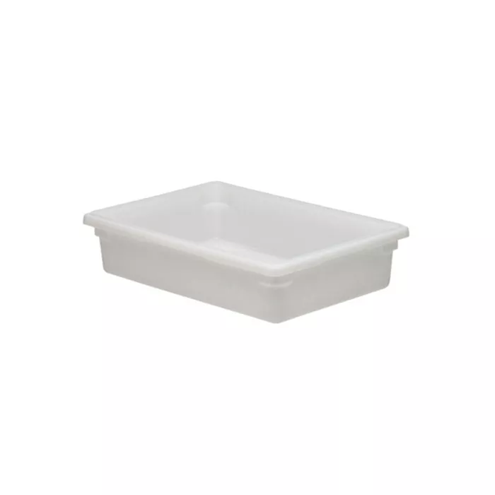 Economical choice for storing bulk produce and ingredients. Reduce risk of cross contamination by transferring product out of cardboard boxes. Smooth surfaces for easy cleaning. Texturing on the bottom reduces risk of scratching. Made of impact, stain and chemical resistant solid white plastic. Withstands temperatures from -40°F to 160°F (-40°C - 70°C).