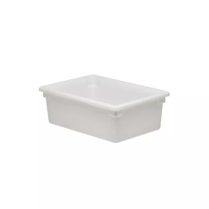 Economical choice for storing bulk produce and ingredients. Reduce risk of cross contamination by transferring product out of cardboard boxes. Smooth surfaces for easy cleaning. Texturing on the bottom reduces risk of scratching. Made of impact, stain and chemical resistant solid white plastic. Withstands temperatures from -40°F to 160°F (-40°C - 70°C).
