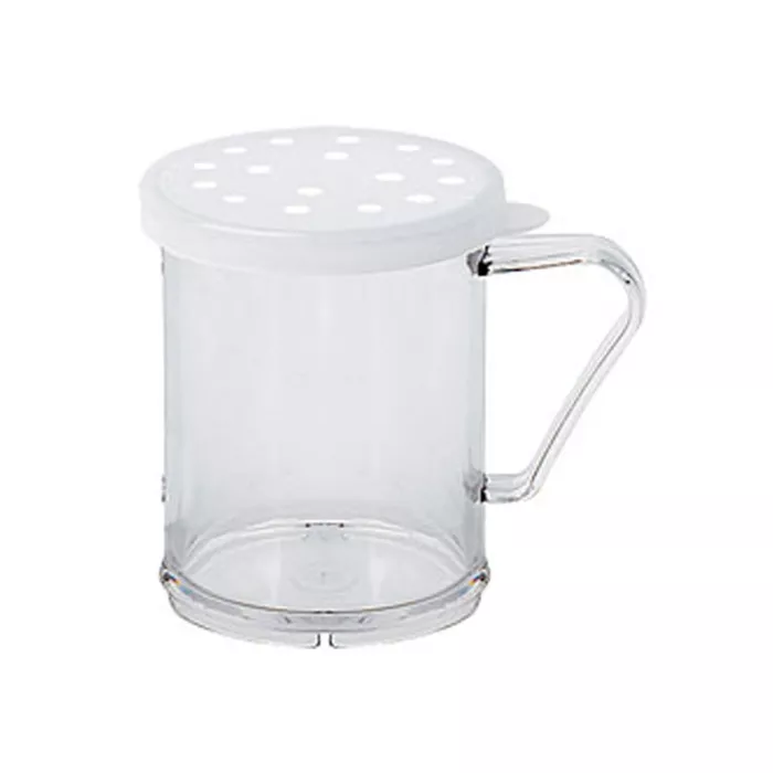 Made of clear, virtually unbreakable Camwear® polycarbonate. Shaker holds approximately 10 oz (300ml) of product. Lids work for salt and pepper, cheese, parsley and fine or medium textured products. Color-coded to help identify contents at a glance.