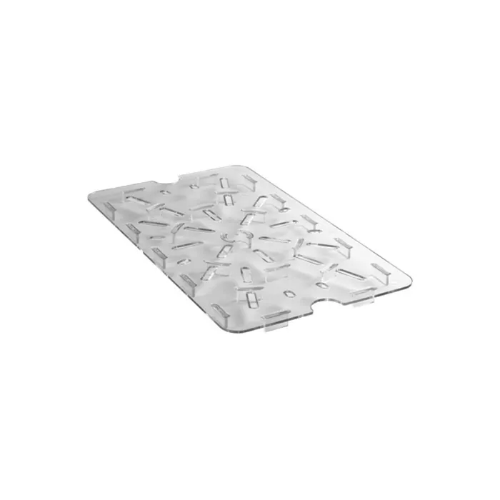 Lifts contents out of liquids to enhance food quality and freshness. Made of virtually unbreakable polycarbonate. Camwear® drain shelves fit in both Camwear® boxes and poly boxes.