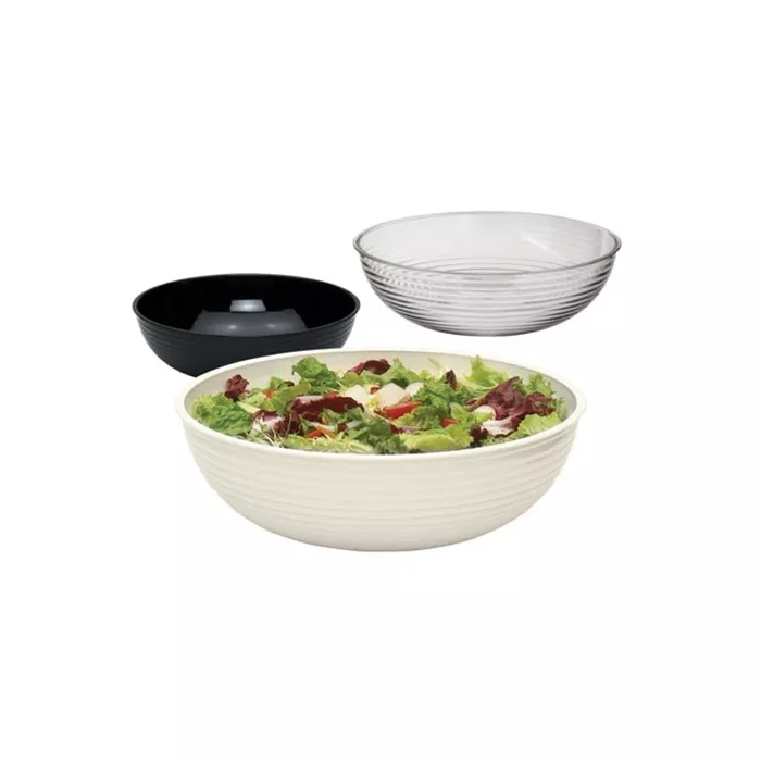 Ideal for fruit, salads, snacks and desserts. Stylish, contemporary appearance for a dramatic presentation. Made of virtually unbreakable Camwear® polycarbonate. Will not break, dent, or chip. Resistant to stains, acids and odors. Colours: clear (135), black (110), white (148). NSF listed.
