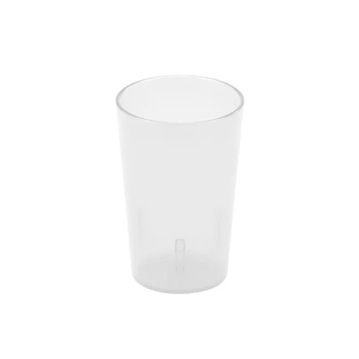 Textured on outside to resist scratching, smooth on the inside for easy cleaning. Made of durable, impact-resistant SAN plastic. Interior stacking lugs for easy storing. Sani-Rim lip provides a sanitary drinking surface.