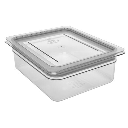 Molded-in polyurethane gasket on the lid grips the side of the food pan, reducing spills and points of cross contamination. Colours: clear (135).