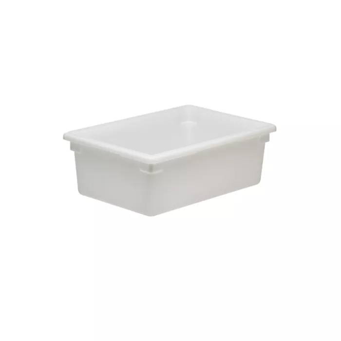 Use to store bulk produce and ingredients. Reduce risk of cross contamination by transferring product out of cardboard boxes. Smooth surfaces for easy cleaning. Texturing on the bottom reduces risk of scratching. Made of impact, stain and chemical resistant solid white plastic. Withstands temperatures from -40°F to 160°F (-40°C - 70°C).