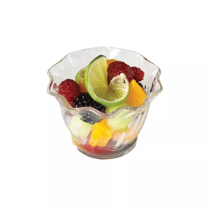 Ideal for hot or cold side dishes, desserts, dips, or fruit. Easily sits with entree on a plate for condiments or side dishes. Stacks in place on a buffet station for breakfast cereals, ice cream or salads. Made with virtually unbreakable Camwear® polycarbonate or break-resistant SAN.
