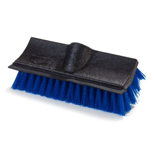 Crimped polypropylene bristles wash easily and prevent gathering of mold and mildew. Split shape is efficient for cleaning flat surfaces, under counters, around equipment and along baseboards. Has molded-in rubber squeegee for water control. BPA free.