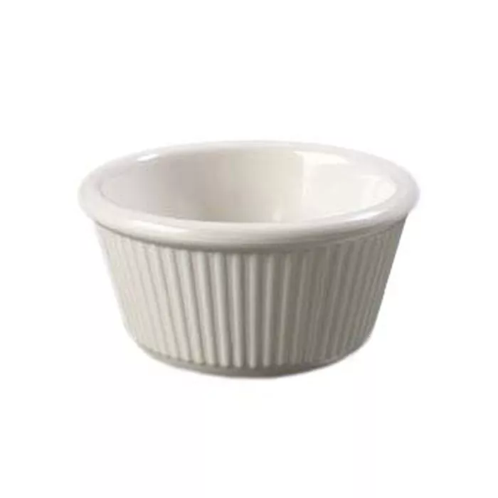Unique faceted ramekins feature a special stacking design for easier storage.