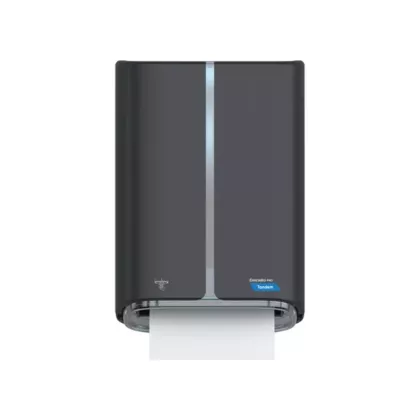 - Grâce à son mécanisme de support zéro-gaspillage, le distributeur utilise 100% de chaque rouleau, ce qui réduit le gaspillage et augmente le nombre d'essuyages de mains