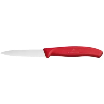 Victorinox’s Serrated Paring Knife features a 3.25" wavy-edged stainless steel blade ideal for slicing soft fruits or meats without crushing. Lightweight and precise, it's perfect for quick prep tasks.