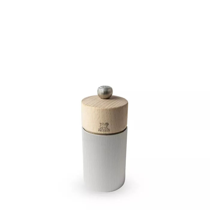 Crafted for modern elegance and everyday function, the Peugeot Line Salt Mill combines natural beechwood with brushed aluminum to create a refined tabletop accessory. With its clean vertical profile and textural contrast, this mill delivers effortless grinding and adds contemporary style to any kitchen or dining setting.
