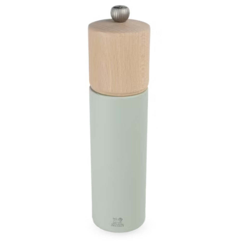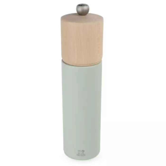 The Peugeot Boreal 8.25" Salt Mill, Sage Green combines sustainable craftsmanship with nature-inspired design. The soothing sage green finish complements the rich, dark tones of the matching pepper mills in the Boreal collection, creating a harmonious set that adds a personal touch to any table or kitchen.
