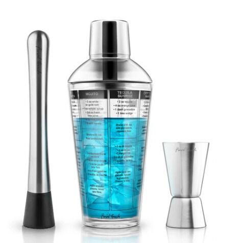 Recipe Imprints: 7 popular cocktail recipes are imprinted directly onto the shaker for quick reference.