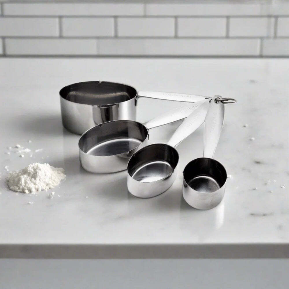 Cuisinox 4 Piece Measuring Cup Set, a durable stainless steel solution for precise ingredient measuring. Designed for practicality, this measuring cup set stays organized with a metal ring, ideal for any kitchen.