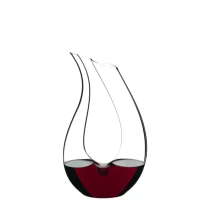 The Amadeo Decanter is a masterpiece of design and craftsmanship. Its unique lyre-shaped form offers both visual elegance and practical functionality, allowing wine to be decanted through its wider opening and poured smoothly from its slender spout.