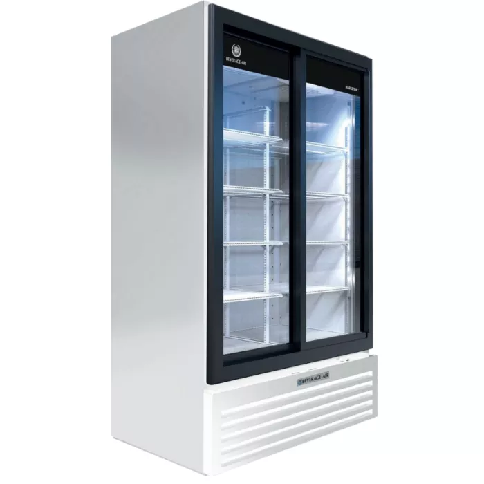The Beverage-Air 54" Merchandiser Refrigerator with 2 Glass Sliding Door, White Exterior is designed for commercial environments that require reliable cooling and efficient space utilization. With a durable steel exterior, energy-efficient refrigeration system, and user-friendly features, this unit ensures optimal product storage while maintaining low operational costs.