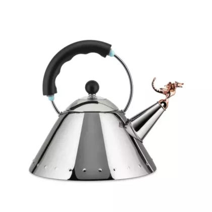 For this special edition, Graves has reimagined the kettle’s whistle, transforming it into a captivating creature inspired by both mythology and futuristic design. The new whistle takes the form of a dragon-like, prehistoric reptilian creature—an embodiment of strength and good fortune, as symbolized by the dragon in Chinese culture. This new addition enhances the kettle’s charm, making it not only a functional kitchen tool but also a conversation starter.