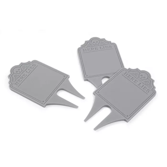 Here lies the best food in town. With Overview, your guests won't have to dig for answers! These double-pronged, reusable food picks make it easy to label dishes on your buffet table or charcuterie board. Each set includes twelve 1.6" x 3.1" picks and a black marker for quick labeling. Wipe clean with isopropyl alcohol to reuse for your next gathering.