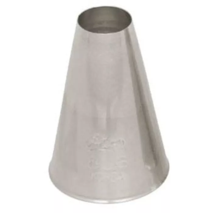 The Ateco piping tip features a plain, round opening designed for smooth, consistent piping of batters, creams, and icings. Its wide diameter makes it ideal for bold designs, large decorations, and high-volume output perfect for both professional and home kitchens.