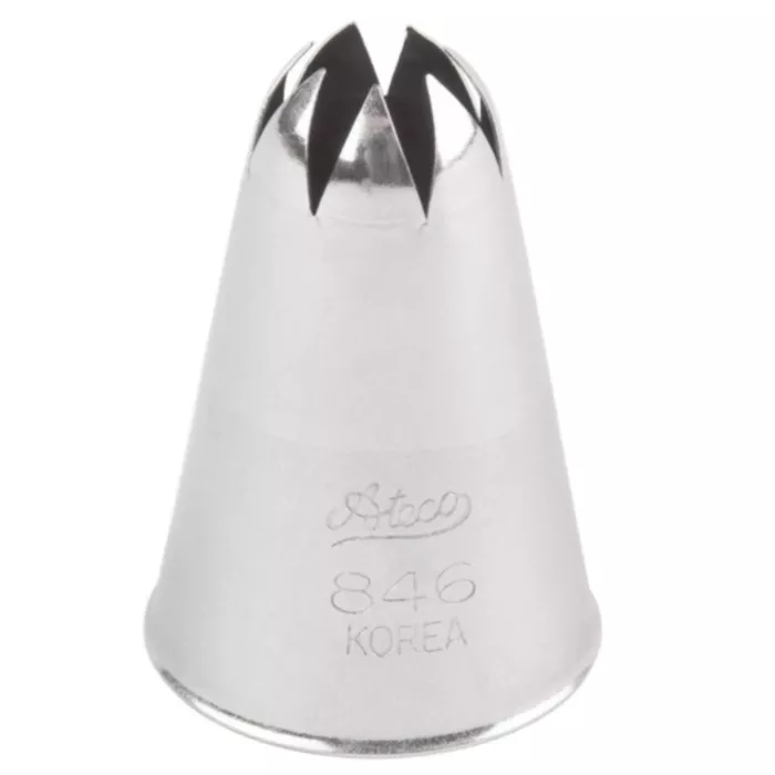 The Ateco Closed Star Tip offers a larger opening and tighter ridges for creating bold, defined rosettes, swirls, and borders. Its closed star design provides a solid texture, making it ideal for dramatic decorative effects on cakes and pastries.