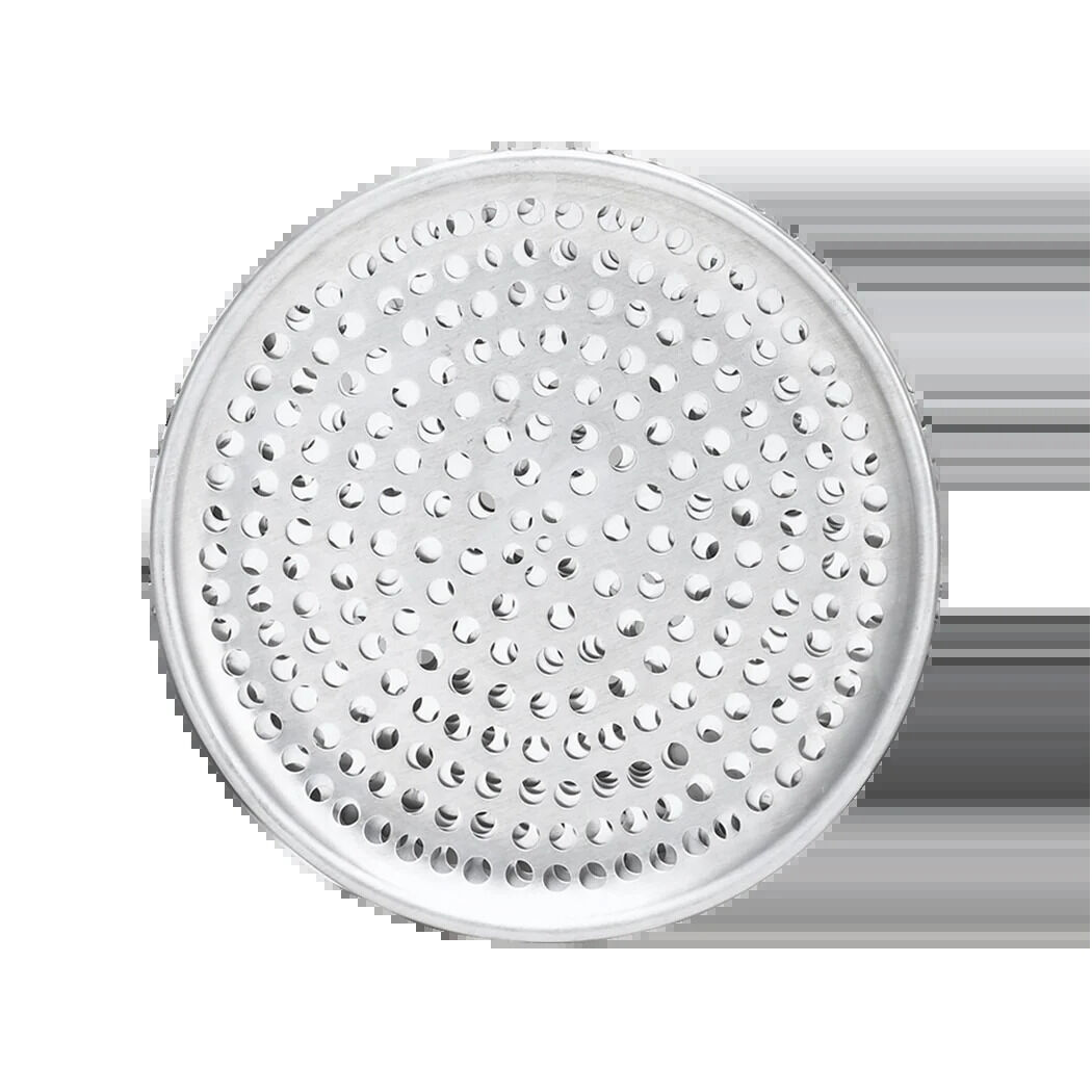 The Browne Perforated Pizza Pan, Aluminum is designed to enhance baking performance by allowing better airflow, ensuring a crispier crust and faster cooking time.