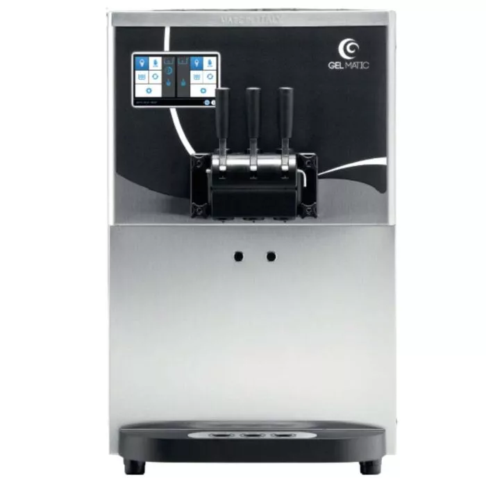 Serve premium soft serve with high-speed precision using the GEL MATIC Double Flavour Soft Serve Machine. Designed for professional use, this countertop model offers two flavors plus a twist option, making it ideal for ice cream shops, cafés, and high-traffic dessert counters. With a pressure pump feeding system, large hopper capacity, and intelligent touchscreen control, this machine ensures smooth, consistent results and unmatched productivity.