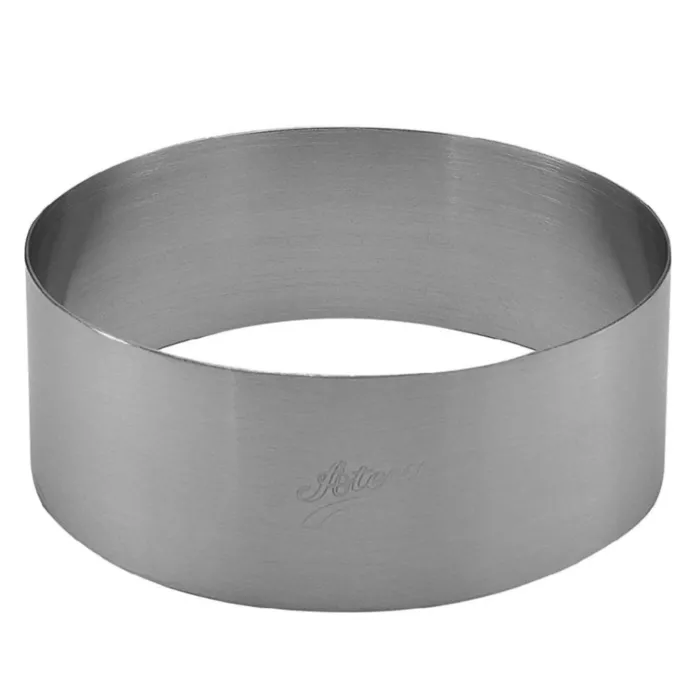 This Ateco ring mold is crafted from durable stainless steel and designed to create precise, uniform shapes for both sweet and savory dishes. It's ideal for plating tartares, stacking layered desserts, forming cakes, or cutting dough.