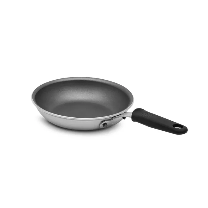 The Vollrath Wear-Ever® 14" Non-Stick Fry Pan ensures efficient cooking with its quick-heating aluminum and rivetless interior for easy cleaning. The PowerCoat2™ coating offers superior food release, reducing oil use, while the silicone handle, with a no-slip grip, stays cool up to 450°F. NSF-certified and USA-made, this pan is perfect for restaurants or catering.