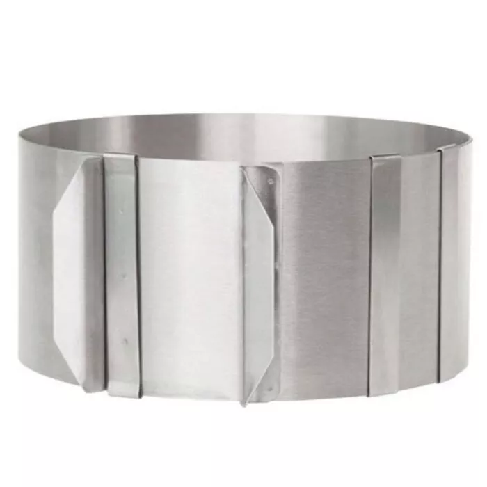 The Ateco Adjustable Cake Ring allows bakers to create perfectly sized cakes with ease. Its sliding mechanism adjusts to fit a variety of cake diameters, making it versatile for layered cakes, mousses, and tarts.