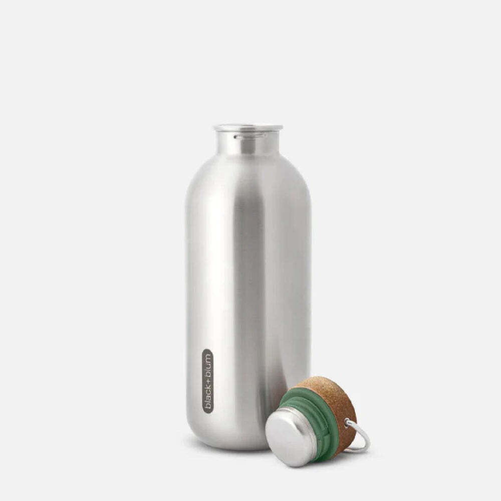 A lightweight and compact bottle, this steel bottle is a no-nonsense design for those who prioritize simplicity and sustainability. Made from high-quality stainless steel, it is leakproof and a durable alternative to single-use plastic bottles. Its strong lid, featuring a wood-fiber composite, and a stainless steel carry loop make it easy to transport and use on the go.