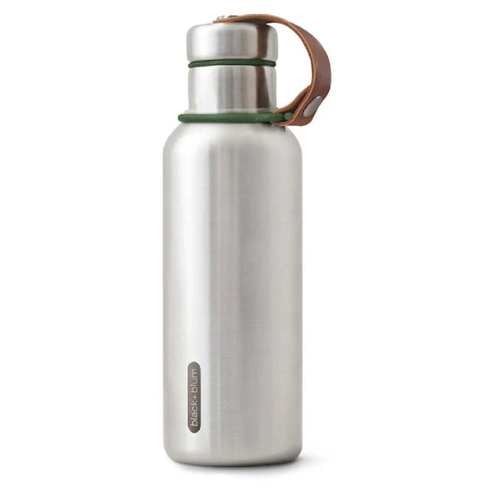 The Black + Blum Insulated Water Bottle in Olive is a durable, eco-friendly flask designed to keep beverages hot or cold while on the go. Its capacity keeps drinks cold for up to twenty-four hours and hot for up to twelve hours, and the leakproof lid ensures no spills during daily use or outdoor activities.