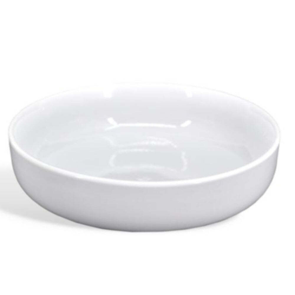 Crafted from durable white porcelain, this shallow bowl features smooth, clean lines that complement any table setting. Its versatile size makes it ideal for serving ice cream, yogurt, oatmeal, fruit, and more.