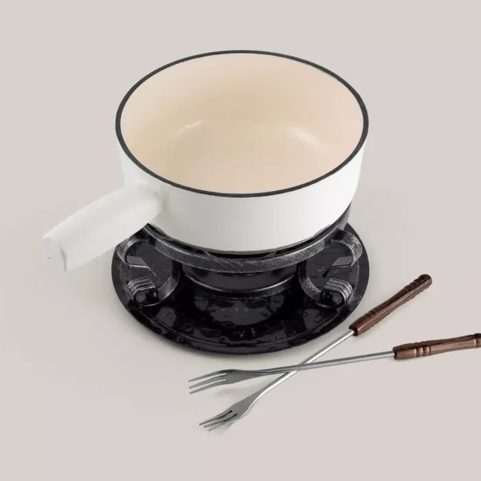 Elevate your dining experience with the Swissmar Lugano Nine Piece Cast Iron Fondue Set in matte white. Crafted for both functionality and style, this set is perfect for intimate gatherings or festive celebrations.