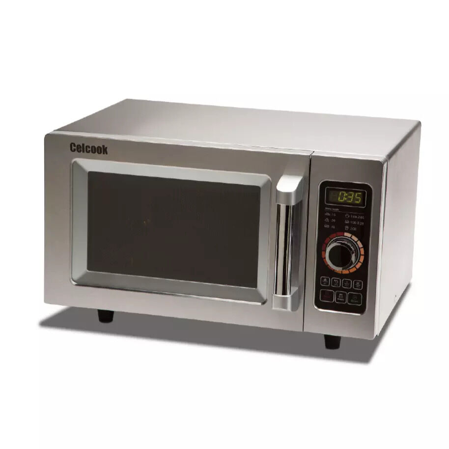 This Celcook Microwave is a commercial microwave oven equipped with digital dial timer and its programmable up to 10 menu items. It has a maximum cooking time of 60 minutes with 5 power levels and the ability to have 3 stage cooking. Output wattage shall be 1000 watts with bottom feed distribution for a uniform heating pattern. The oven will have stainless steel exterior and an interior cavity with the 25 liters (0.8 cu ft) cavity able to accommodate a 12” plate.