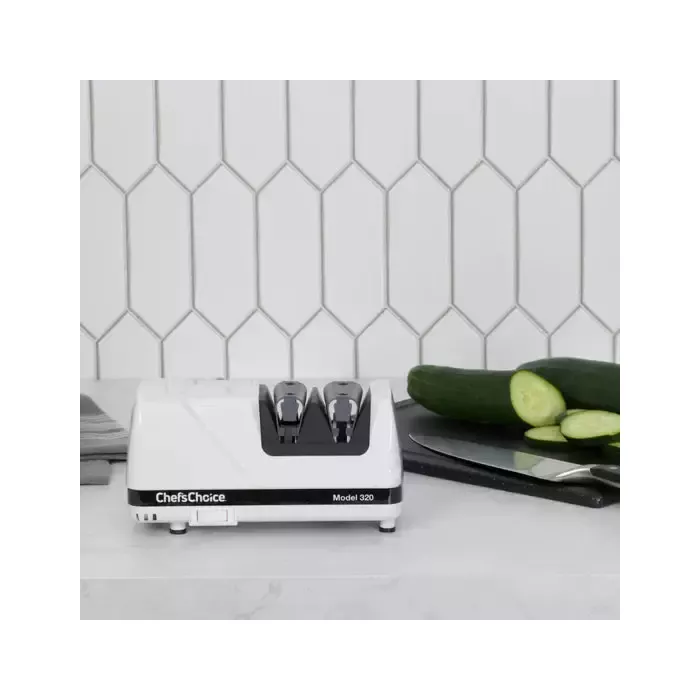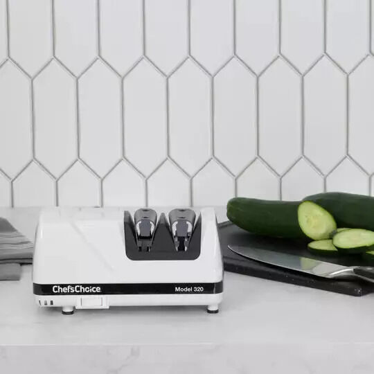 Keep your knives sharp and cutting like new with the Chef's Choice 0320000 Professional Electric Knife Sharpener with Diamond Hone. Compact and lightning fast, this professional sharpener uses advanced technology to sharpen both fine edge (straight edge) and serrated knives.