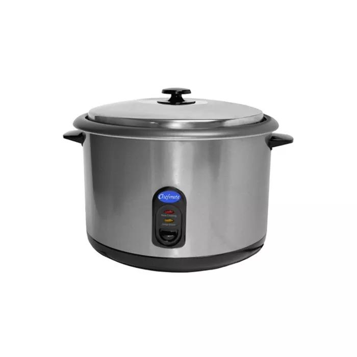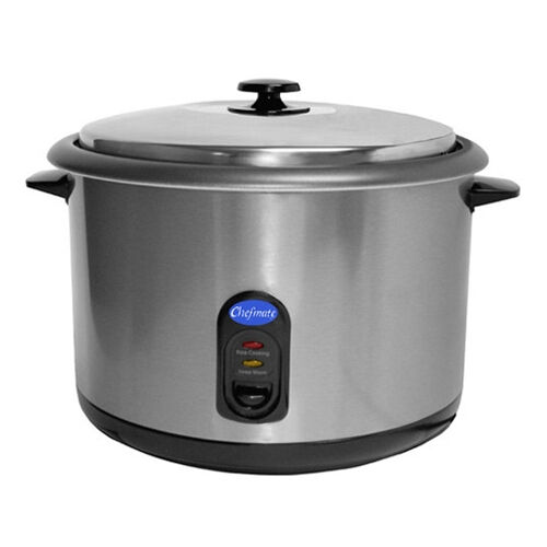 Single switch for cook-to-warm. Stainless steel body and lid. Cooks up to 25 one-cup servings. Built-in thermostat. Removable pot with nonstick surface. Over-heat protection with manual reset. 1440 watts for cooking rice. Measuring cup and scoop included. Attached 4ó-foot power cord and NEMA 5-15plug. 120V.