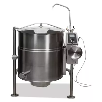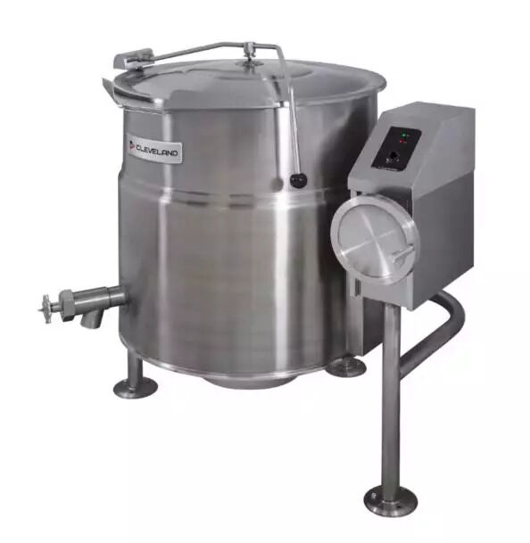 Cleveland KEL40T 40 Gallon Tilting 2/3 Steam Jacketed Electric Steam Kettles offer ultra efficient heat transfer, uniform heating and superior product handling. Steam jacketed kettles offer faster cooking times because two thirds of the cooking surface comes into contact with the product at a much lower temperature, compared to stock pots that use a much higher temperature only at the bottom of the pot. In addition, accurate temperature controls eliminate constant monitoring and resetting. Foods won’t burn or scorch and you can hold product at a simmer without over cooking. Tilting models makes product handling simple. Clean up is easy since food isn’t burned or over cooked like stock pots.